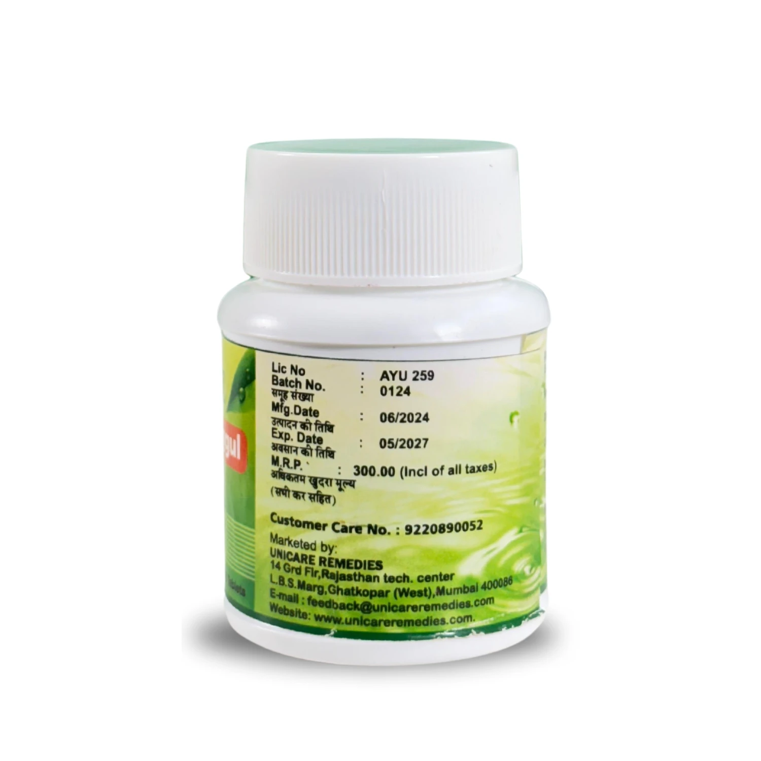 By balancing Kapha and reducing Medha (fat tissue), Unicare’s Kanchnar Guggul supports thyroid function, helps reduce goitre or nodules, and alleviates hypothyroid symptoms like weight gain, fatigue, and sluggish metabolism.