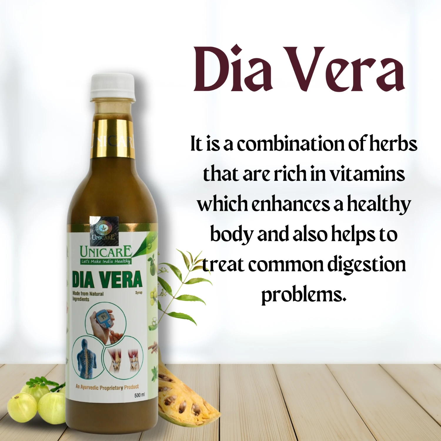 Unicare’s Dia Vera syrup is an effective anti-inflammatory tonic that helps control blood sugar, improve digestion, and boost immunity.